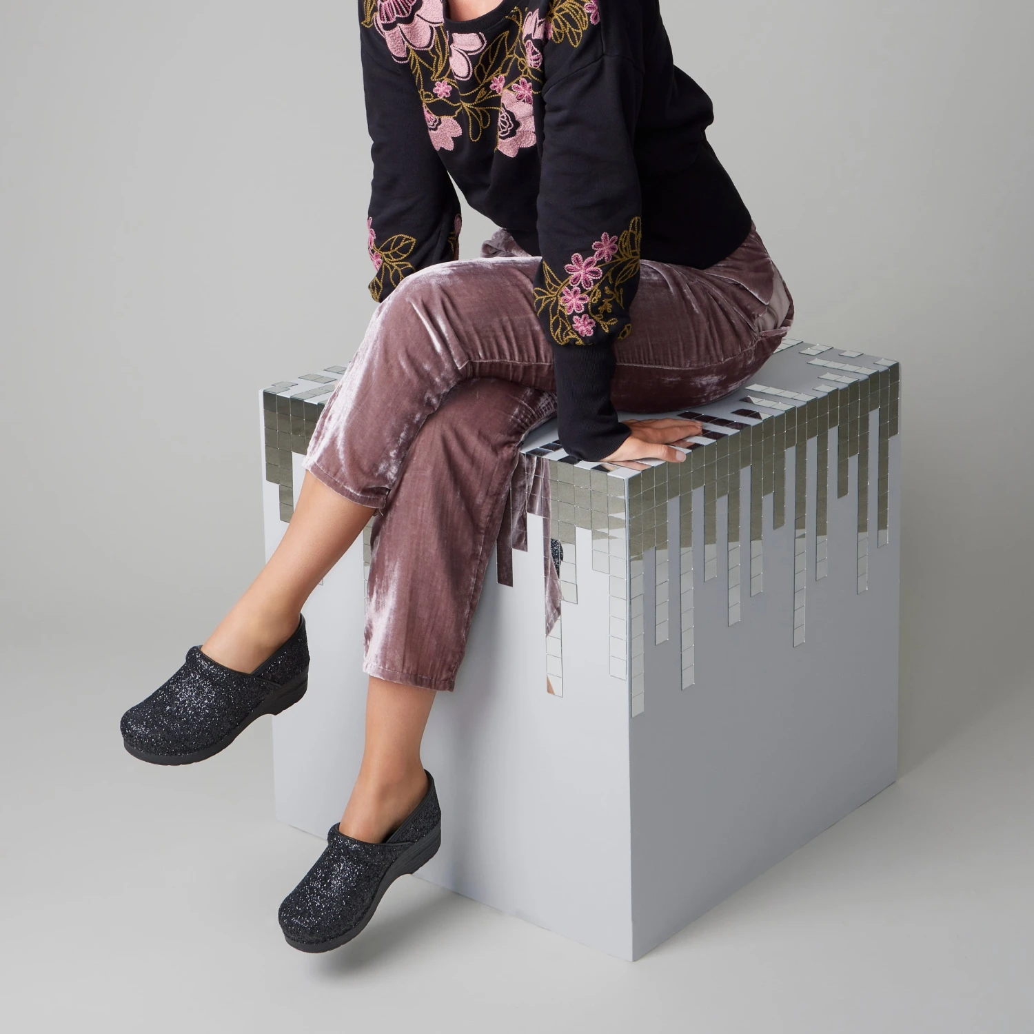 Take your ensemble to the next level with the Professional Glitter Clog! Perfect for a night out or just for a bit of extra flair, this clog will add a fun twist to any outfit. Get ready to shine!